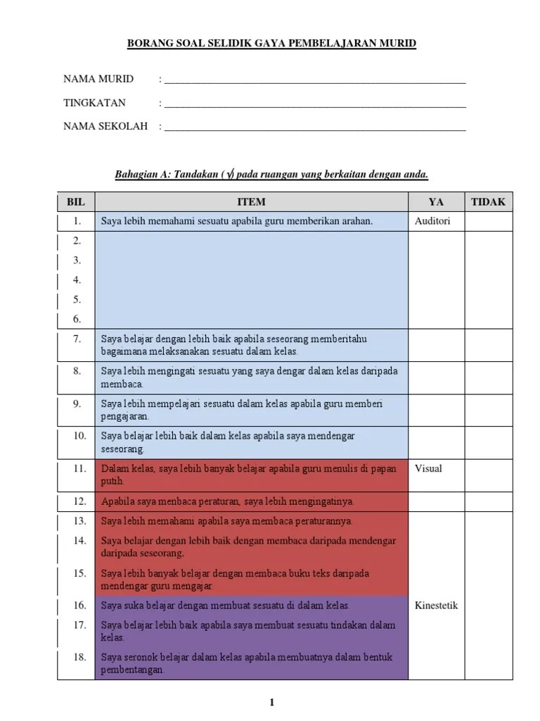 Borang Soal Selidik Gaya Kepemimpinan : Soal Selidik Model Dunn Dunn Pdf